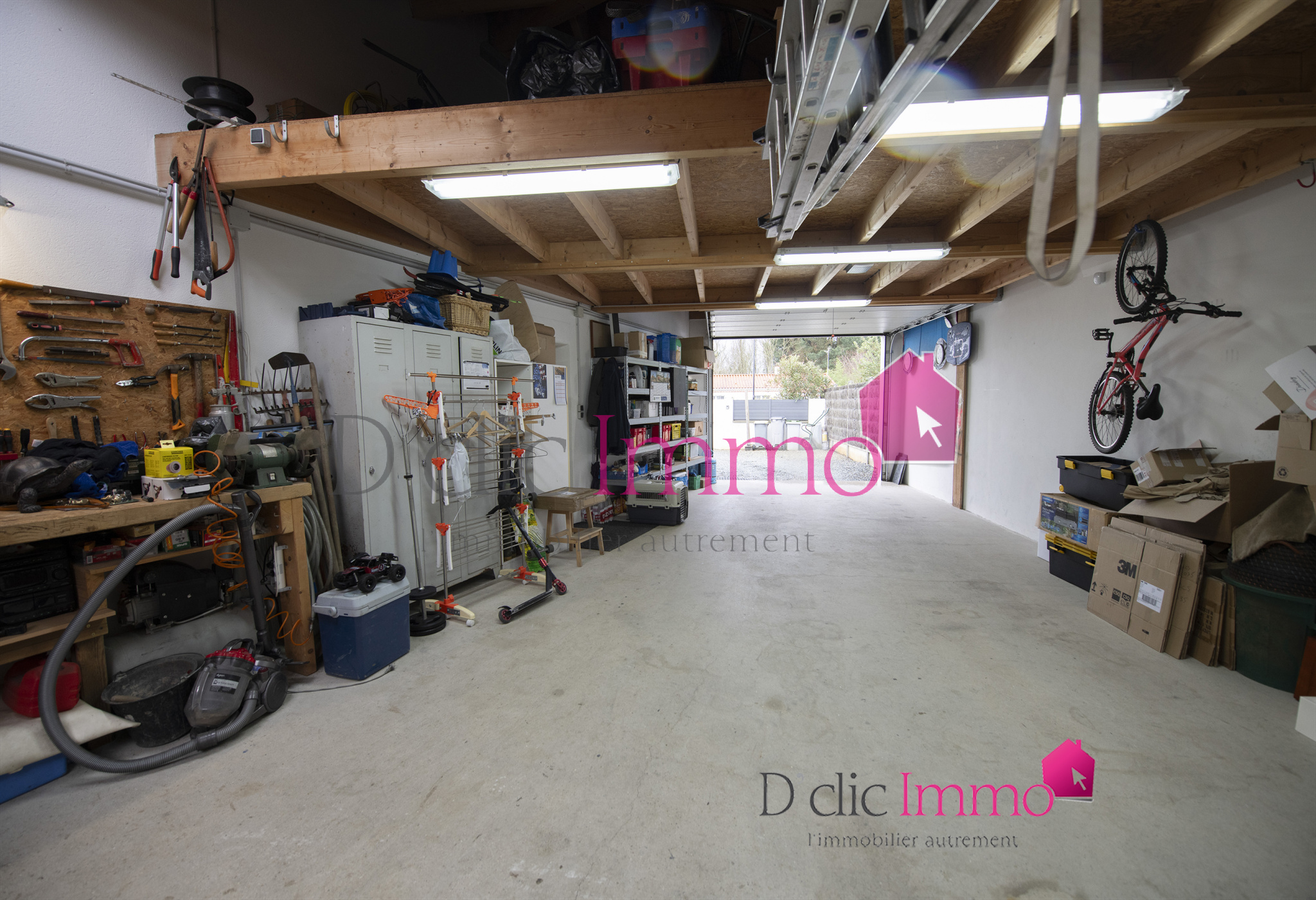 Côté pratique, la maison dispose d’un cellier avec douche et WC ainsi que d’un grand garage de 53 m², offrant de nombreux espaces de rangement.